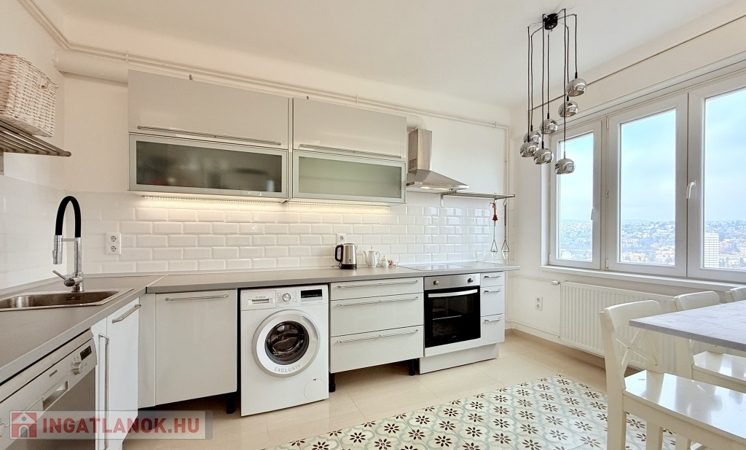 A nemrég befejeződött felújítás során az ingatlan teljes belső tere megújult, az alaprajzi elrendezéssel együtt, nagyobb, tágas terek kerültek kialakításra, új cirkófűtés (kondenzációs kazánnal), új burkolatok, valamint új, halvány szürke frontokkal szerelt, teljesen gépesített (elektromos sütő és főzőlap, kivezetett párelszívó, hűtő- és fagyasztó szekrény, nagy mosogatógép) konyhabútor is beépítésre került.