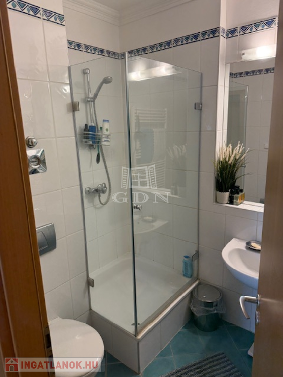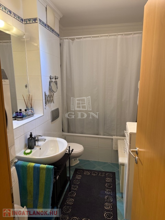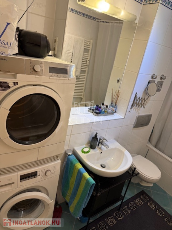 A lakás dupla fürdőszobával, gépesített konyhával és részleges bútorozottsággal rendelkezik, a képeken látható bútorok egy része a jelenlegi bérlő tulajdona.
