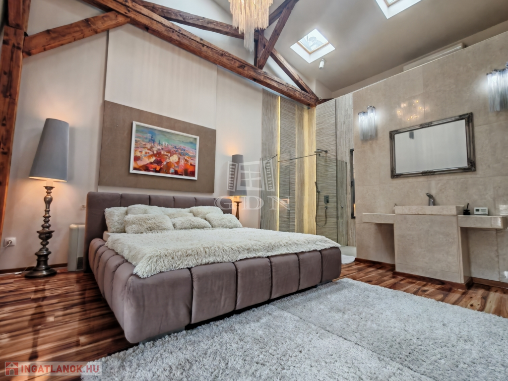 Az ingatlan éke amitől garantáltan el áll a lélegzete....a szint eltolással kialakított, 5 méteres belmagasságú hálószoba aminek a tetején ablakok vannak így akár ágyból is láthatjuk a csillagos eget vagy ébredhetünk arra,hogy a hasunkra süt a nap!