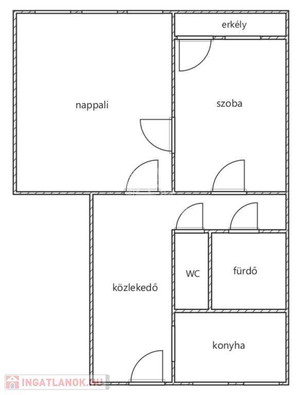 Modern elrendezés: tágas, 21 nm-es nappali, külön és közös bejárattal rendelkező, 12 nm-es háló, világos, ablakos gépesített konyha, vadonatúj fürdőszoba, külön WC, erkély (3 nm) és kényelmes közlekedő hatalmas gardróbszekrénnyel.
