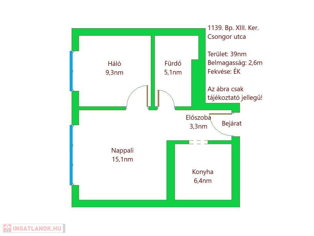 Budapest 13. kerületében, Csongor utcára néző, 2005-ben épült ház 3. emeleti világos, egyedi cirkófűtéses lakás kiadó teremgarázzsal együtt. Az erkély nélküli, 40 nm nappali + 1 hálós ingatlan bútorozott, hűtőszekrény és mosógép is van. Fürdőszobájában zuhanykabin, és a toalett is ebben a helyiségben található. Közös költsége: 16.000.- Ft. Bérleti díj: 250.000.- Ft/hó a teremgarázshellyel együtt, melynek bérlése nem kötelező. Tehát a lakás 230.000.- Ft, és a garázs: 25.000.- Ft. Dohányzás és állat tartása nem megengedett.