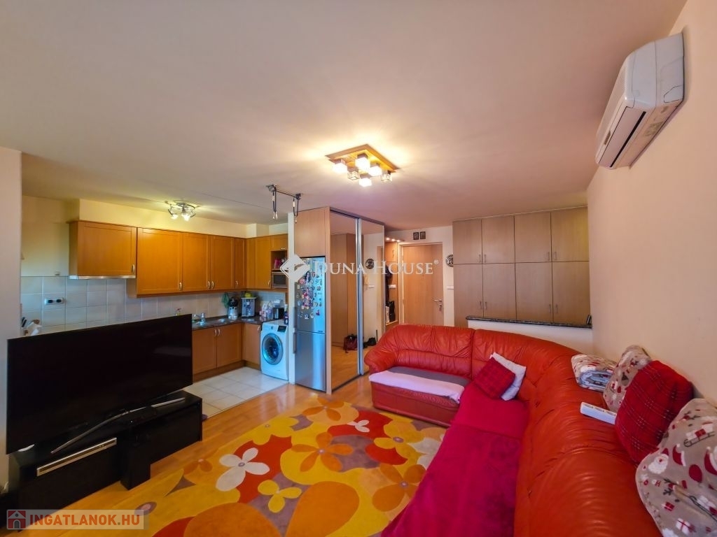Az 5. emeleti, déli tájolású, amerikai konyhás nappalis + 2 külön nyíló szobás lakás állandóan világos és barátságos. A praktikus elrendezést külön WC, külön tároló és kényelmes fürdőszoba egészíti ki. Gyönyörű dunai panoráma tárul eléd. Az ingatlan szép, megkímélt állapotú, jó kisugárzású, azonnal otthonos érzést ad. A házban wellness-részleg, konditerem, valamint 024 órás portaszolgálat teszi teljessé a komfortot, teremgarázzsal együtt hosszú távra kiadó. Kiürítési nyilatkozat szükséges.