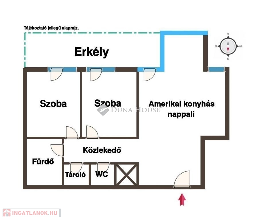 - Amerikai konyhás nappali + 2 külön nyíló hálószoba
