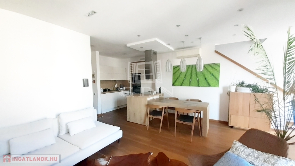 A DUPLA KOMFORTOS lakás extrán csendes, parkosított környezetben helyezkedik el a társasház legfelső szintjén.
