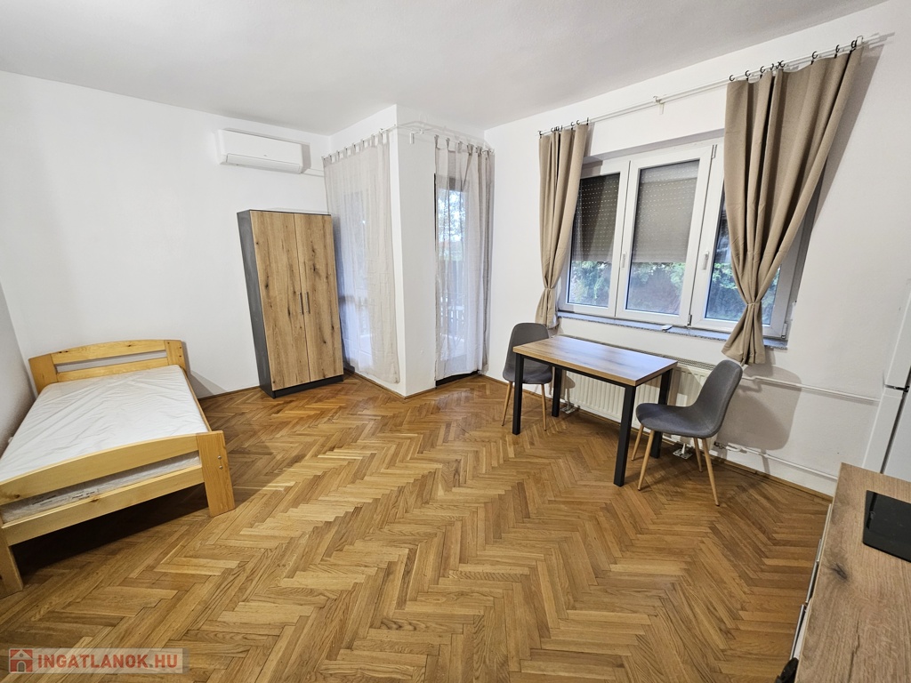 Zugló Városliget melletti, Metró közeli (Mexikói út 400m), klímás stúdió lakás kiadó kertes családi házban, annak felső szintjén. Ingatlanon belül gépjármű beállási lehetőség adott.