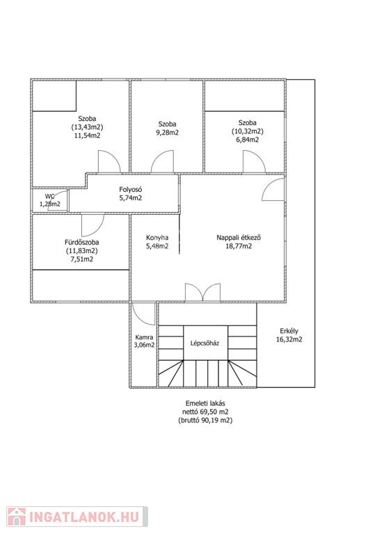 A lakás az első emeleten helyezkedik el, és három különálló szobával rendelkezik, ideális választás lehet családok vagy akár munkatársak, diákok számára is.