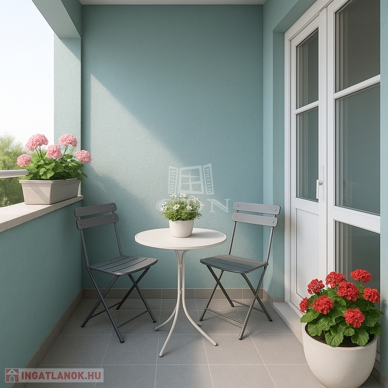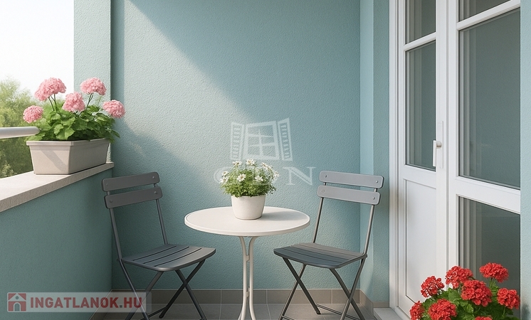 Az utcai kilátást biztosító lakáshoz tartozik egy 4 m²-es és egy 2 m²-es erkély, amely tökéletes helyszín a pihenésre.