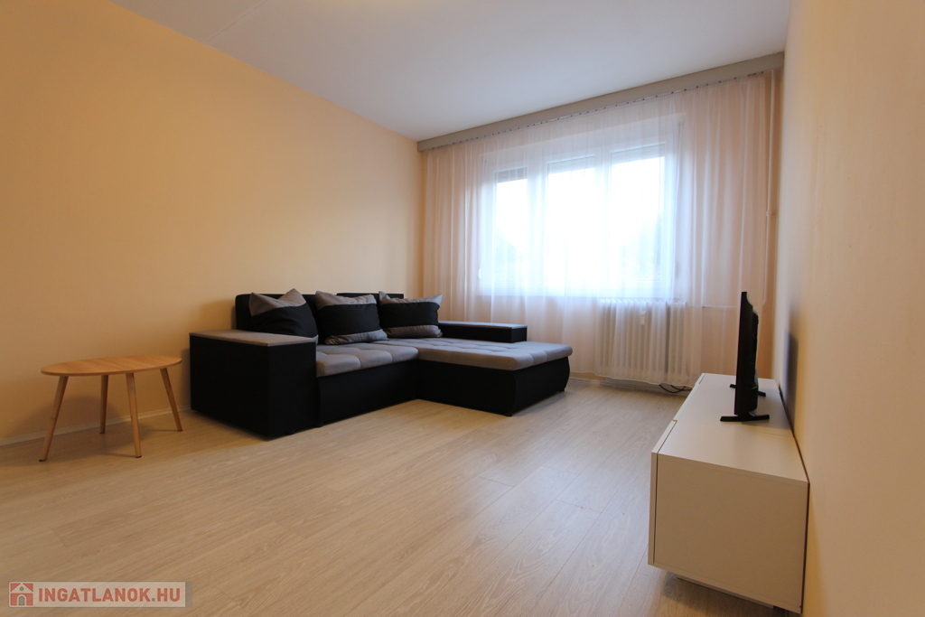 A lakás most kapott friss festést, új franciaágyat, L alakú kanapét, gardróbszekrényt.