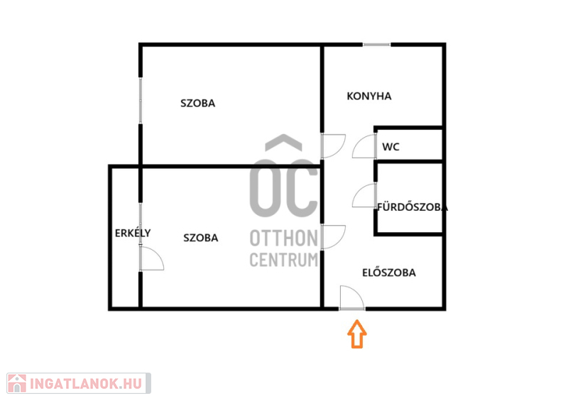 - 2 hálószoba, konyha, fürdőszoba külön WC, előszoba és közlekedő elosztású