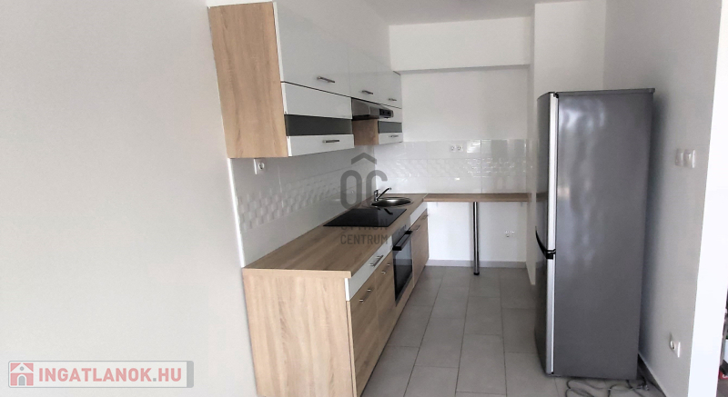 A lakásban felszerelt konyha található hűtővel, egyébként nem bútorozott.