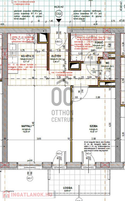 Helyiségei : konyha - étkező - nappali egyben, szoba, külön fürdő, wc, és erkély.