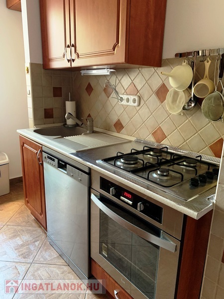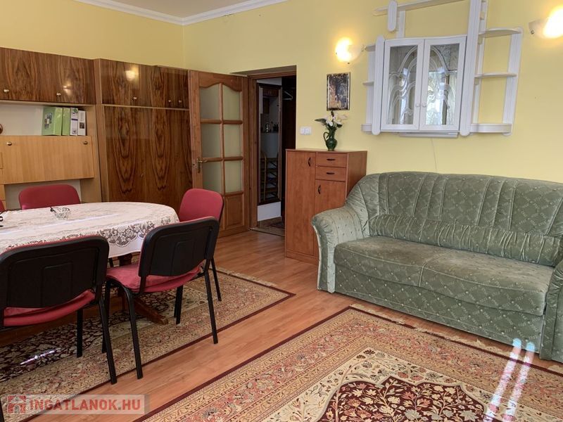 Piac utcai, 1. emeleti, 66 m2-es, 3 szobás, konyhás, fürdõszobás, bútorozott lakás hosszú távra kiadó. A lakás mûanyag nyílászárós, reluxa, új bejárati ajtó, mosogatógép, hûtõ, mosógép, mikró, teljesen berendezett. Igény szerint az udvarban kocsibeállási lehetõség!