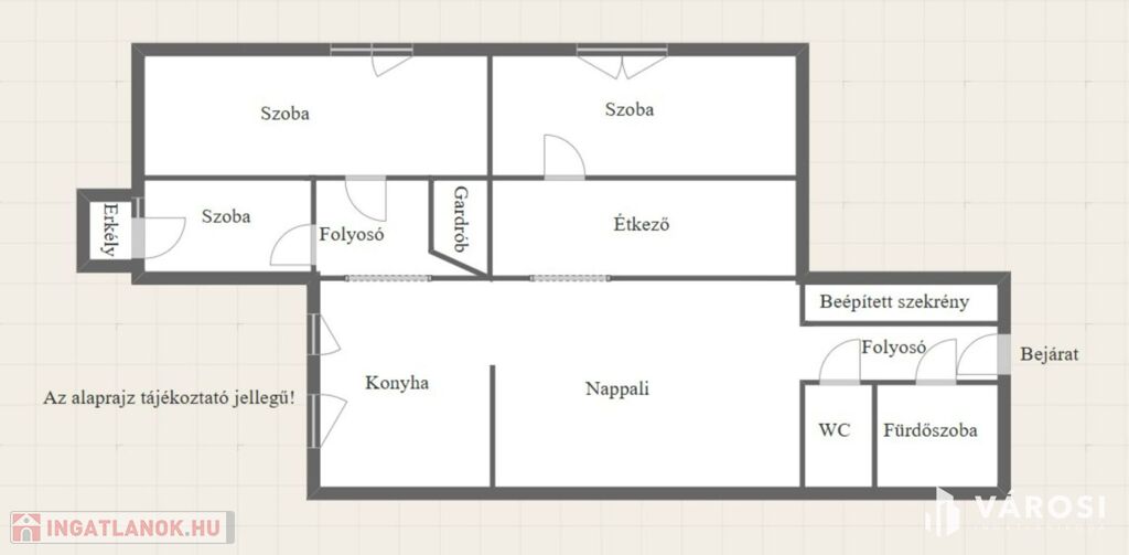 - 3 tágas szoba + 1 nappali + 1 étkező, a szobák külön nyílnak