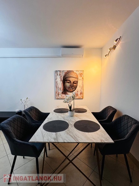 - Teljes bútorzat + modern gépesítés (mosógép, hûtõ, mikró, sütõ, tûzhely, elszívó, étkészlet)