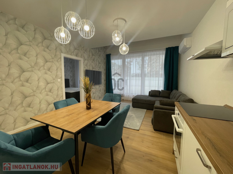 Az újépítésű társasház I. emeletén található lakás modern, ízlésesen berendezett, minden helyiségből kijárással a teraszra.