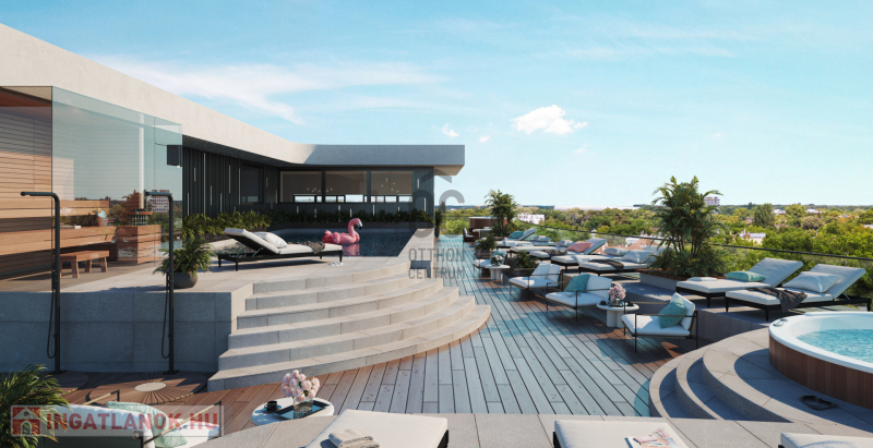 Ez az új építésű, modern társasház nem csupán otthon, hanem életstílus: a lakók nap mint nap élvezhetik a magas szintű szolgáltatásokat és a páratlan kényelmet. Reggel egy frissítő úszás a tetőmedencében, este pihenés a jakuzziban vagy a szaunában – itt ez a mindennapok része.