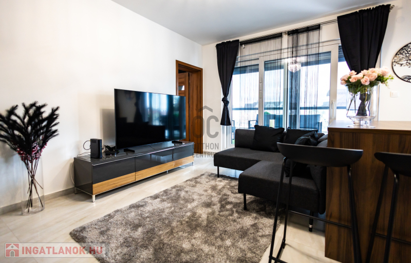 A lakás prémium minőségű anyagokkal, igényes belsőépítészeti megoldásokkal került kialakításra. Klimatizált, korszerű gépészettel felszerelt, energiahatékony, így alacsony rezsiköltséggel fenntartható. A modern konyha beépített gépekkel ellátott, a burkolatok és szaniterek magas minőséget képviselnek. Teljes bútorzattal kiadó a lakásban padlófűtés, mennyezet hűtés-fűtés található. A teraszon pergola, az ablakokon elektromos redőnyök, és elektromos zip függöny van felszerelve.A lakáshoz tartozik egy önálló,zárt garázs ,a társasház udvarán.