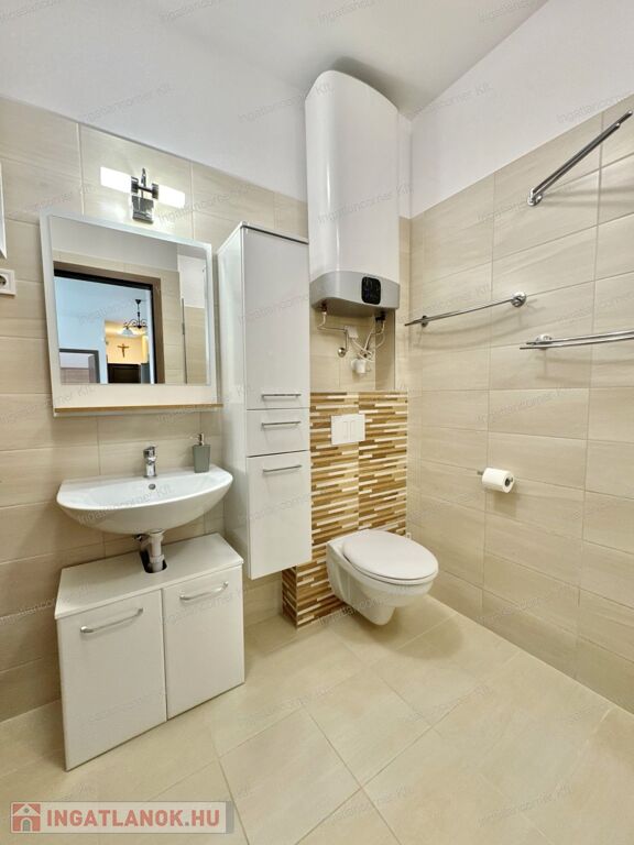 -MELEGVÍZ ELLÁTÁST: a fürdőszobában elhelyezett 100 literes modern lapos bojler biztosítja.