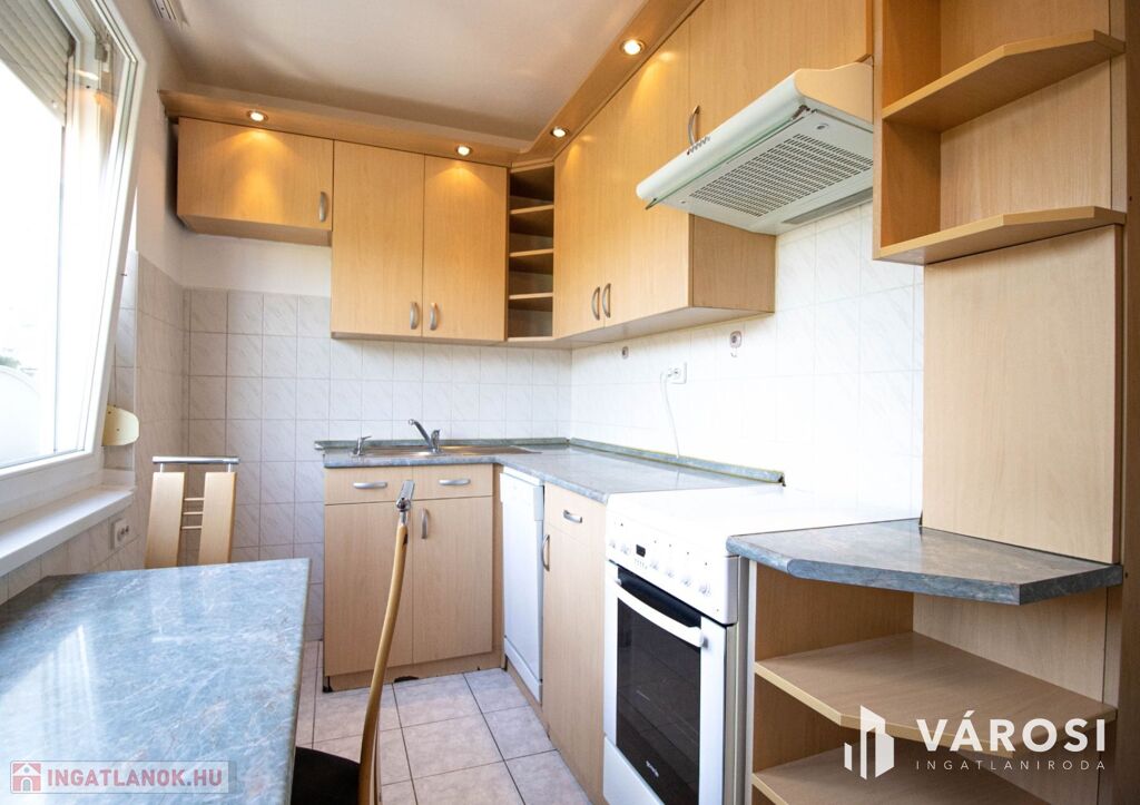 A lakás 2 külön nyíló szobából áll, egyikhez 3 m2-es déli fekvésű erkély tartozik, további helyiségek konyha, fürdő, külön wc, közlekedő újszerű beépített szekrénnyel.