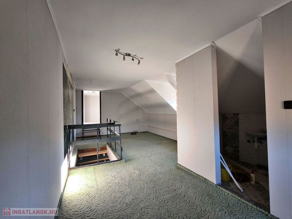 Földszint: nappali, étkező-konyha, gardrób, fürdőszoba, WC, előszoba