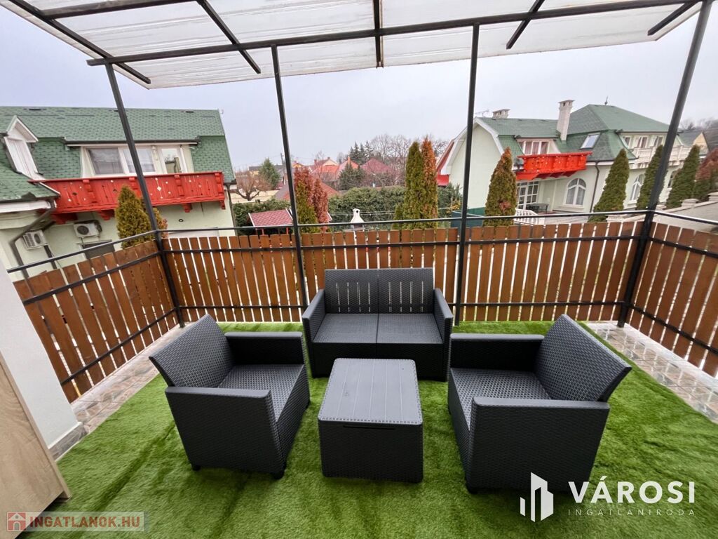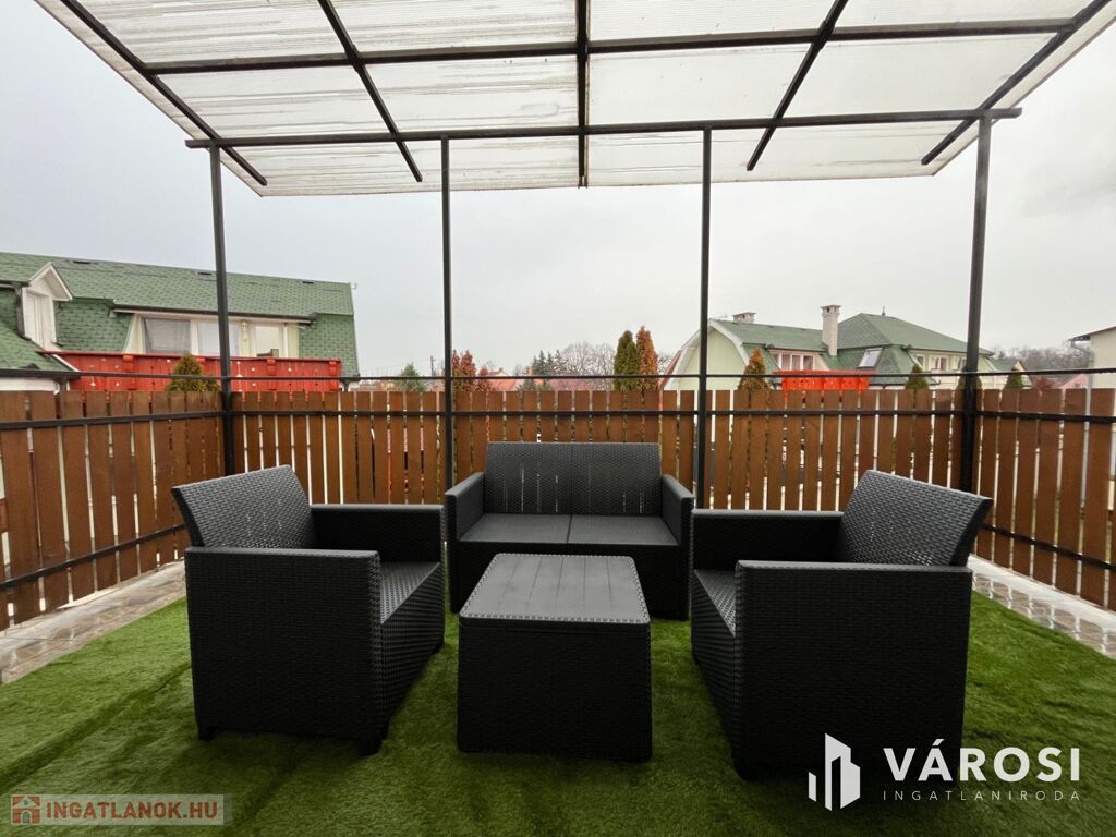 A lakáshoz tartozik egy tágas műfüves kerti bútorokkal ellátott terasz is, ahol élvezheti a zöld környezet nyújtotta nyugalmat. Az udvari gépjárműbeálló biztosítja a kényelmes parkolást. A belváros, a sétálóutca, és a Fürdő közelsége pedig garantálja az igazi Hajdúszoboszlói életérzést!