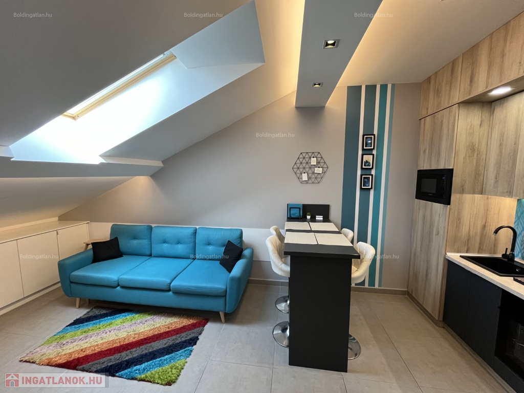 Kaposváron a belváros közelében 45 m2-es, igényesen kialakított és berendezett - azonnal költözhető - lakás kiadó. A lakásban előszoba-konyha-étkező-nappali, 1 szoba, fürdőszoba-zuhanyzó-wc helyiségek találhatóak. A lakás rezsije nagyon alacsony, a fűtése és a hűtése napelemmel üzemeltetett légkondícionálóval megoldott, a melegvizet intelligens villanbojler szolgáltatja. A lakást a tulajdonosa legfeljebb 2 felnőtt részére kívánja bérbe adni, a dohányzás és a kisállat tartása nem engedélyezett! A parkolás az épület előtti parkolóban ingyenesen lehetséges, a Kossuth tér gyalog 5 perc alatt kényelmes sétával elérhető. Bérleti díj: 220.000.- Ft/hó + 40.000.- Ft rezsi + 1 havi kaució