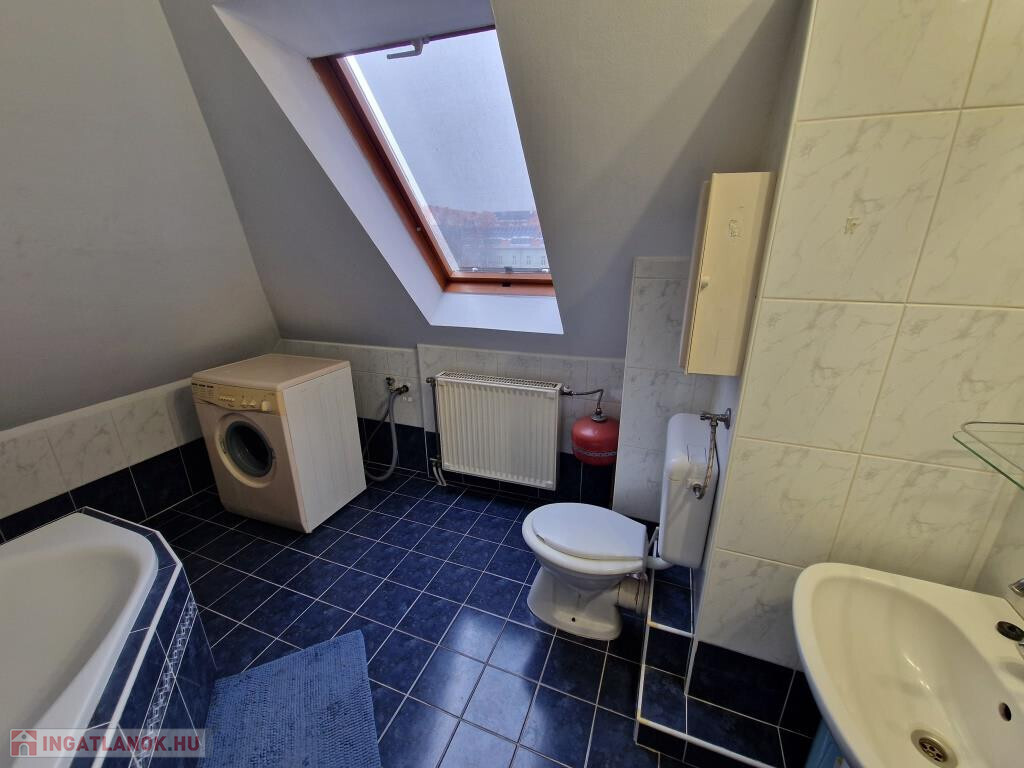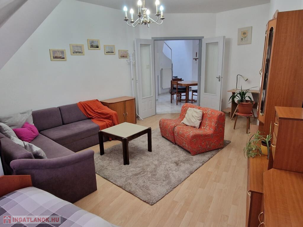 Kaposvár belvárosában, a Teleki utcában kínáljuk bérbevételre ezt a belső kétszintes, 1 + 3 félszobás lakást. Alapterülete 87 m2, a társasház harmadik emeletén helyezkedik el. Alsó szintjén a tágas előtér étkezőként is szolgál, innen nyílik a konyha, a nagyobb méretű nappali szoba, az egyik félszoba, egy zuhanyzós fürdő, valamint egy kis kamra. Innen vezet fel a lépcső a felső szintre, ahol találunk még egy fürdőt sarokkáddal, és két kisebb hálószobát. A lakás tágas, világos, barátságos, elrendezése praktikus. Fűtése saját gázkazánnal megoldott, és légkondi berendezés is van. A lakás a képeken látható bútorzattal és háztartási gépekkel együtt kiadó. Van lehetőség garázst is bérelni, ennek ára plusz 25 EFt havonta. Nemdohányzó bérlőt keresünk hosszabb távra, legalább egy évre, aki a kéthavi bérleti díjnak megfelelő összegű kaució és az első havi bérleti díj kifizetése után beköltözhet. Dohányzás és állattartás tilos.