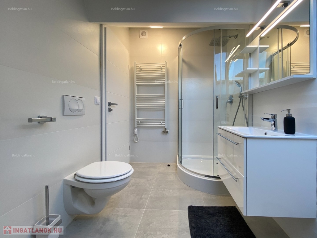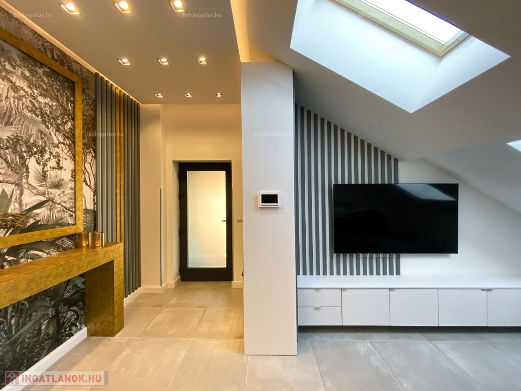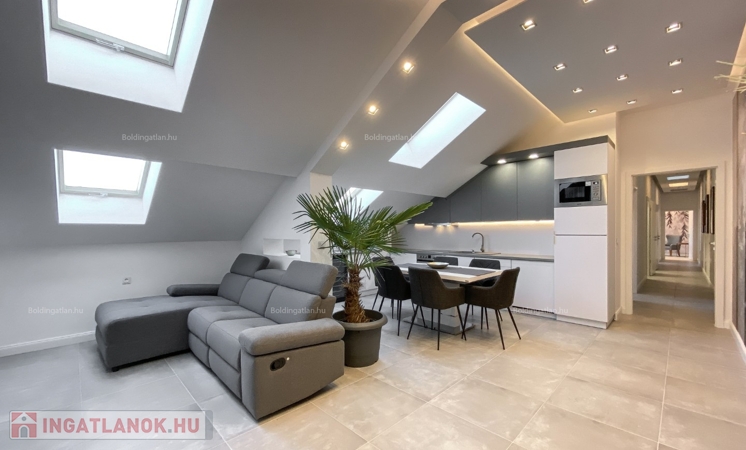 2026.04.01-től!!! Kaposváron a belvárosban, rendezett társasház 1. emeletén - a tetőtérben - exkluzívan kialakított 111,8 m2-es csendes lakás a képeken látható berendezéssel együtt hosszú távra kiadó. A lakásban előszoba, nappali - étkező - konyha beépített gépekkel és külön borhűtővel, motoros árnyékolóval felszerelt terasz, közlekedő, 3 szoba - hozzájuk tartozó 3 db fürdőszoba-wc-kézmosó, továbbá tároló helyiség kerültek kialakításra. A lakás fűtése gázközponti fűtéssel megoldott, a nappaliban és a szobákban légkondicionáló is felszerelésre került. A lakásban a kis állat tartást és a dohányzást nem engedélyezi a tulajdonos. Bérleti díj: 350.000.- Ft/hó + rezsi + 2 havi kaució