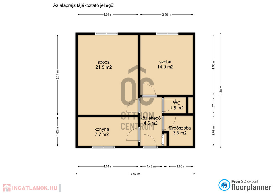 - A szobákban laminált padló, a többi helyiségben járólap van.