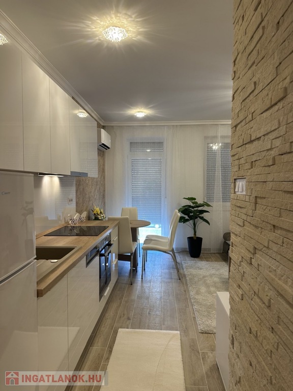 Nyíregyházán, a Belvároshoz közel, 2024-ben átadott társasházban kiadó egy 1 hálószobás + nappalis, első emeleti, klimatizált, igényesen bútorozott és teljesen gépesített lakás.
