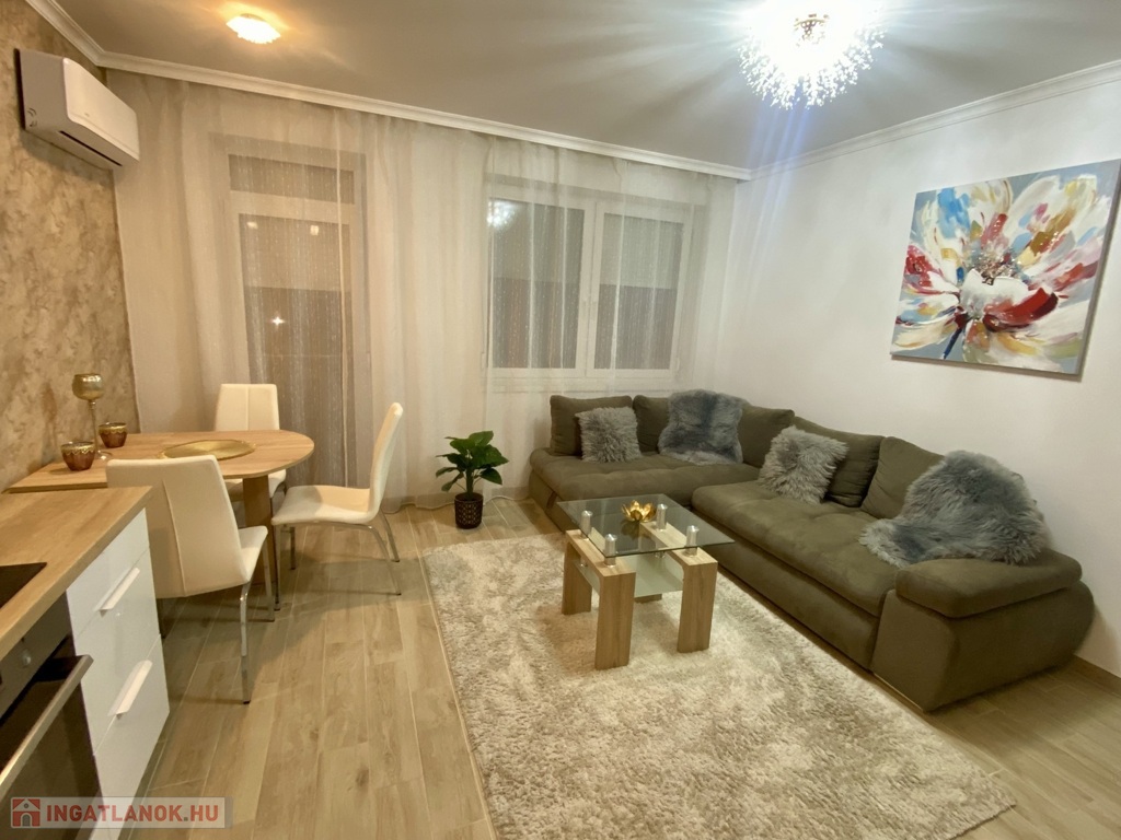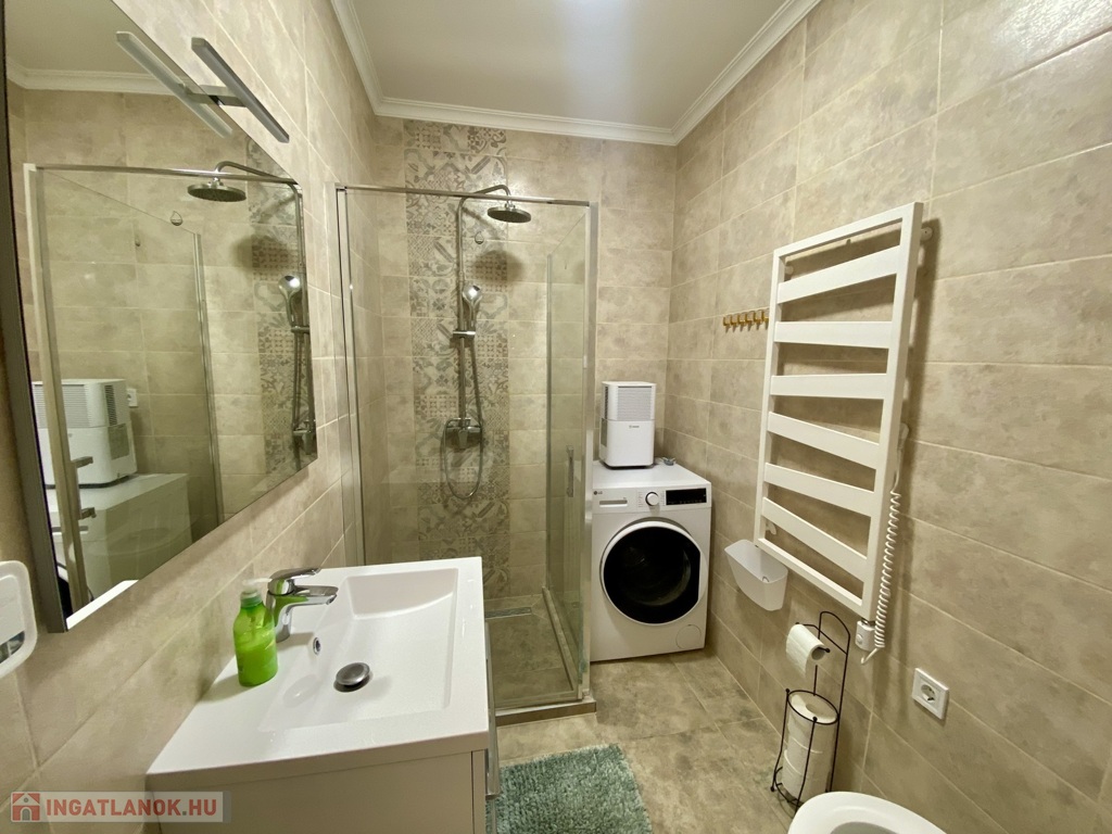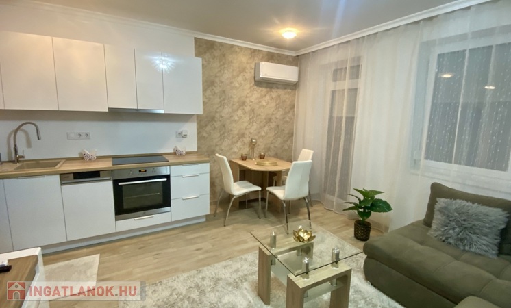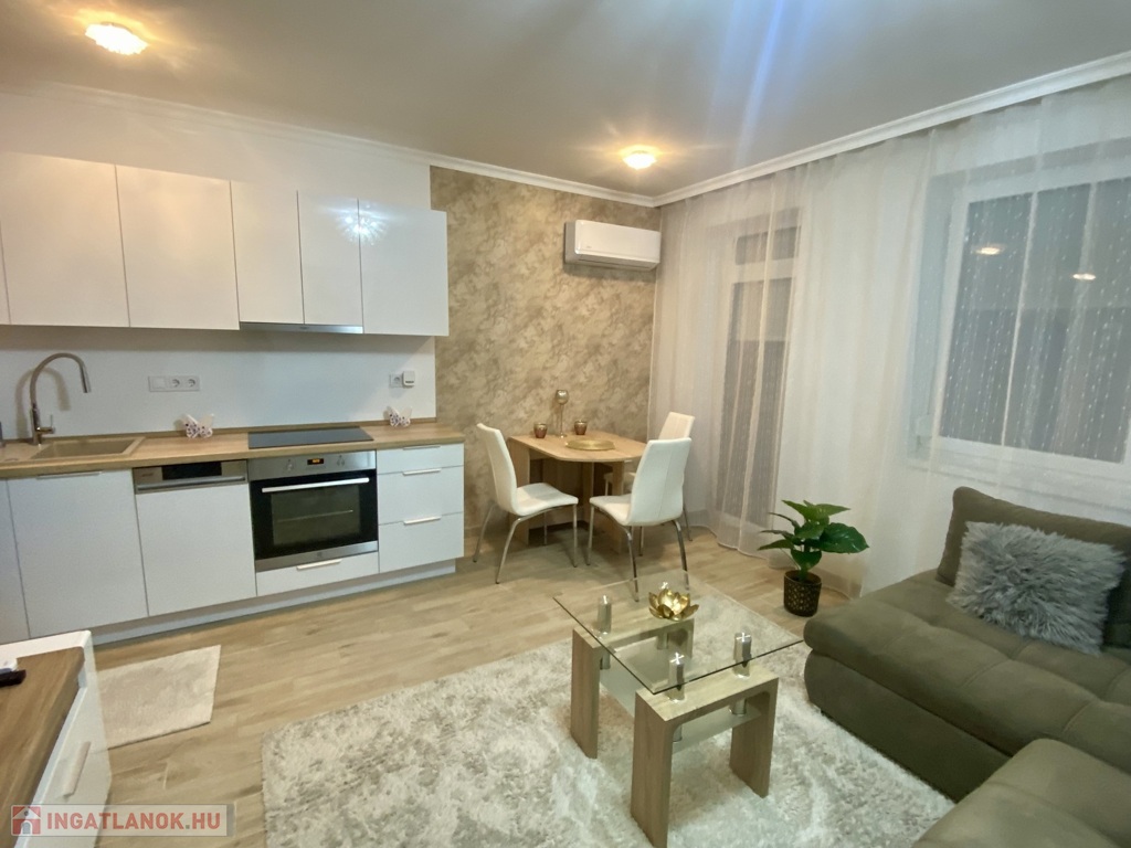 Nyíregyházán, a Belvároshoz közel, 2024-ben átadott társasházban kiadó egy 1 hálószobás + nappalis, első emeleti, klimatizált, igényesen bútorozott és teljesen gépesített lakás.