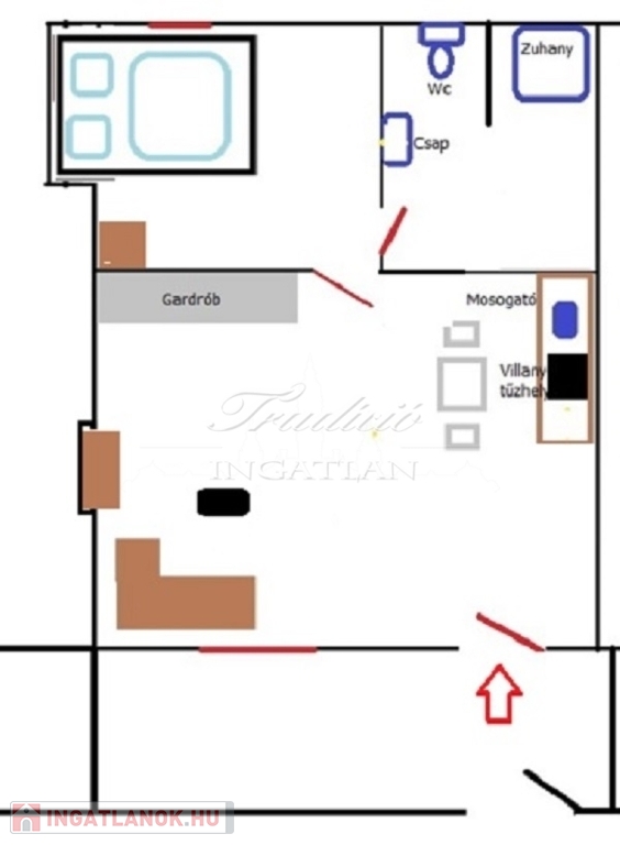 Bérleti díj: 120.000 Ft/ hó + rezsi. (Wifi, korlátlan internet, Tv)