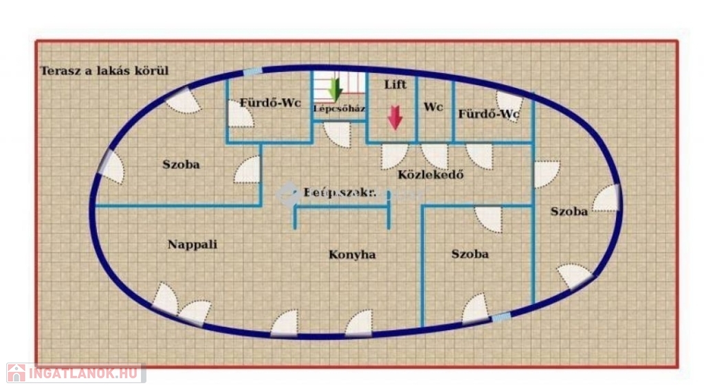 Az ingatlan sajátossága a kb 50 nm-es panorámás tetőterasz a lakás körül, illetve saját liftkapcsolat.