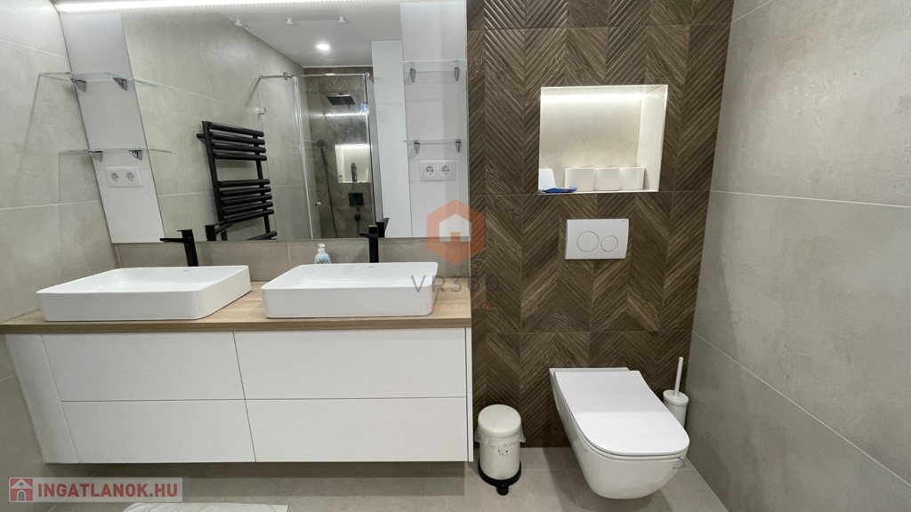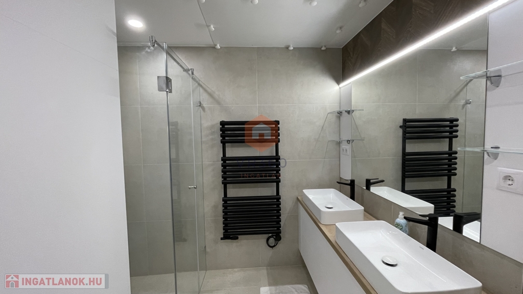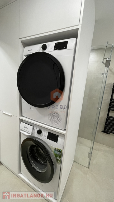 fürdőszoba zuhanyfülkével, mosó-szárítógéppel, Wc.