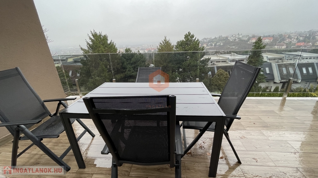A lakáshoz tartozik egy déli fekvésű 30 m2-es hatalmas terasz, melyről panorámás a kilátás a városra.