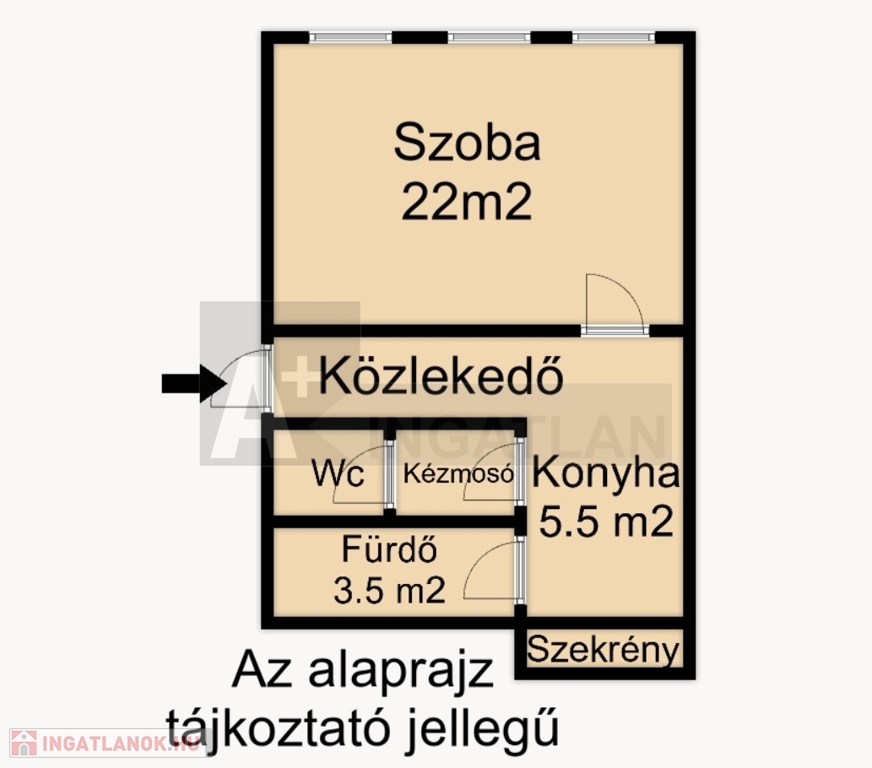 - A teljes lakás mérete 38 m2, a szobáé pedig 22 m2.