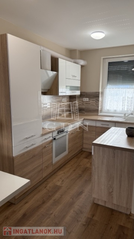 A nappali és a konyha egy légtérben kapott helyet, U-alakú konyhával, ahol minden beépített gép megtalálható – tökéletes a mindennapokhoz vagy vendégfogadáshoz.