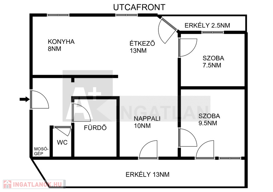 A lakáshoz tartozik egy belső udvarra néző, 13nm-es nagy erkély és egy utcára néző kisebb erkély is.