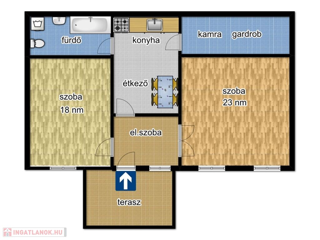 - Szobák laminált lappal fedettek.