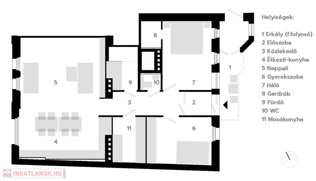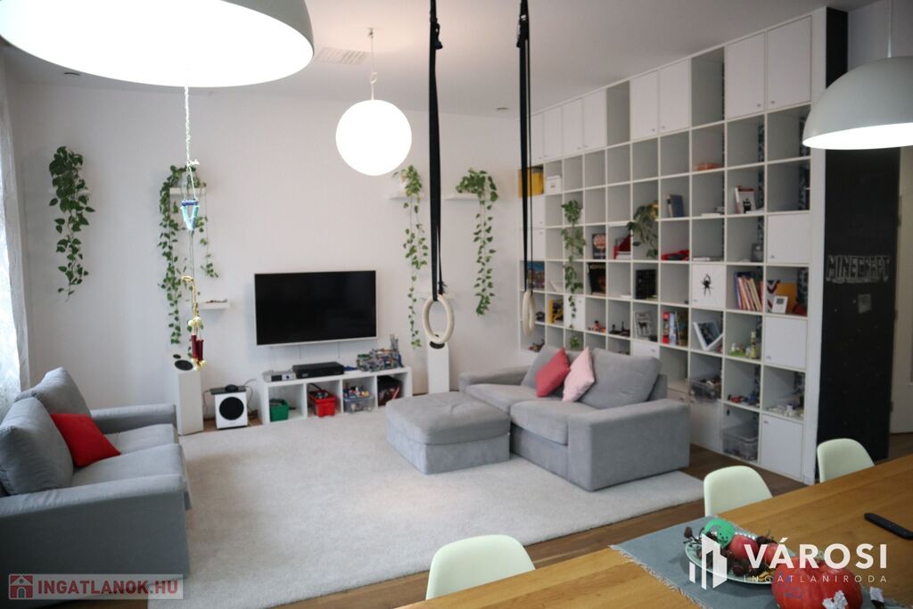 A lakás kifogástalan állapotú, jó átgondolt terekkel rendelkezik, és kapott még külön gardróbot, és háztartási helységet is, ezen felül külön fürdő és WC. elrendezésű.
