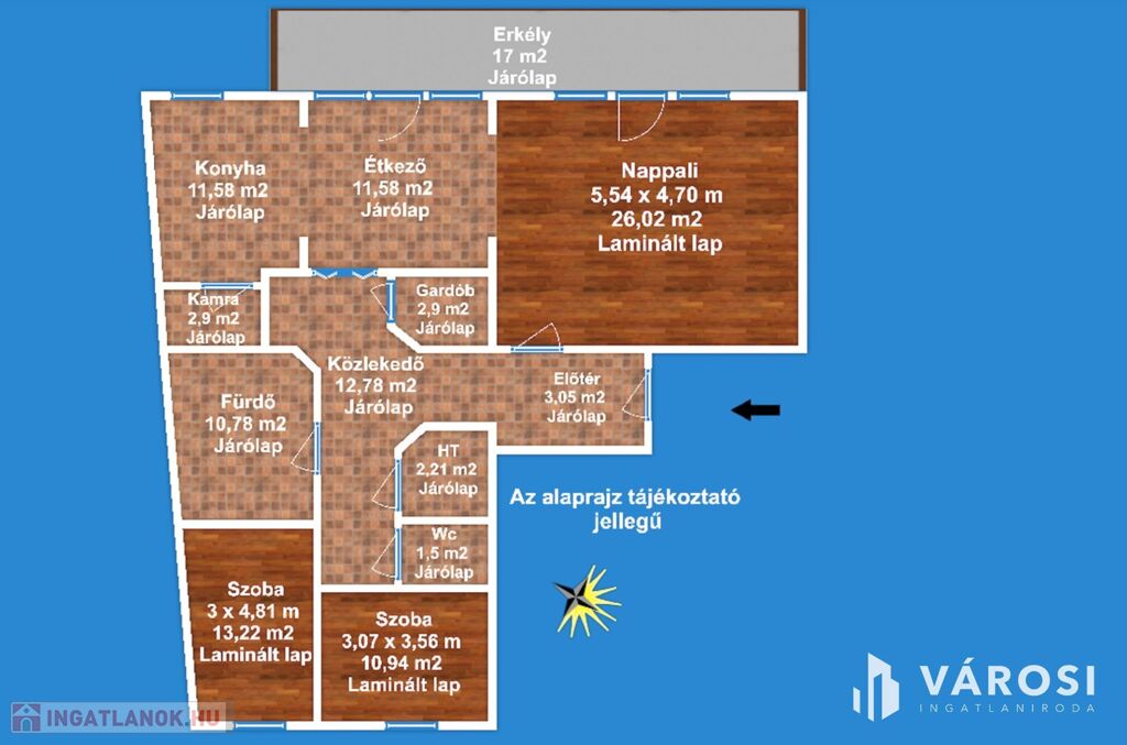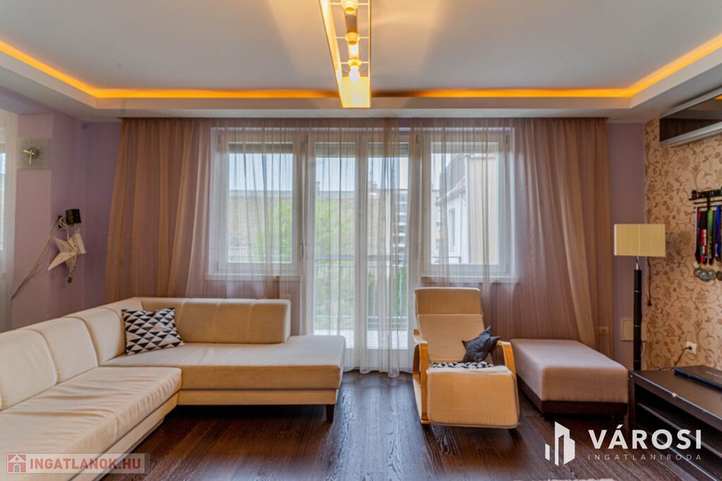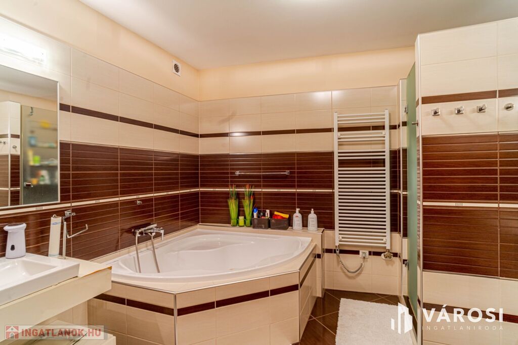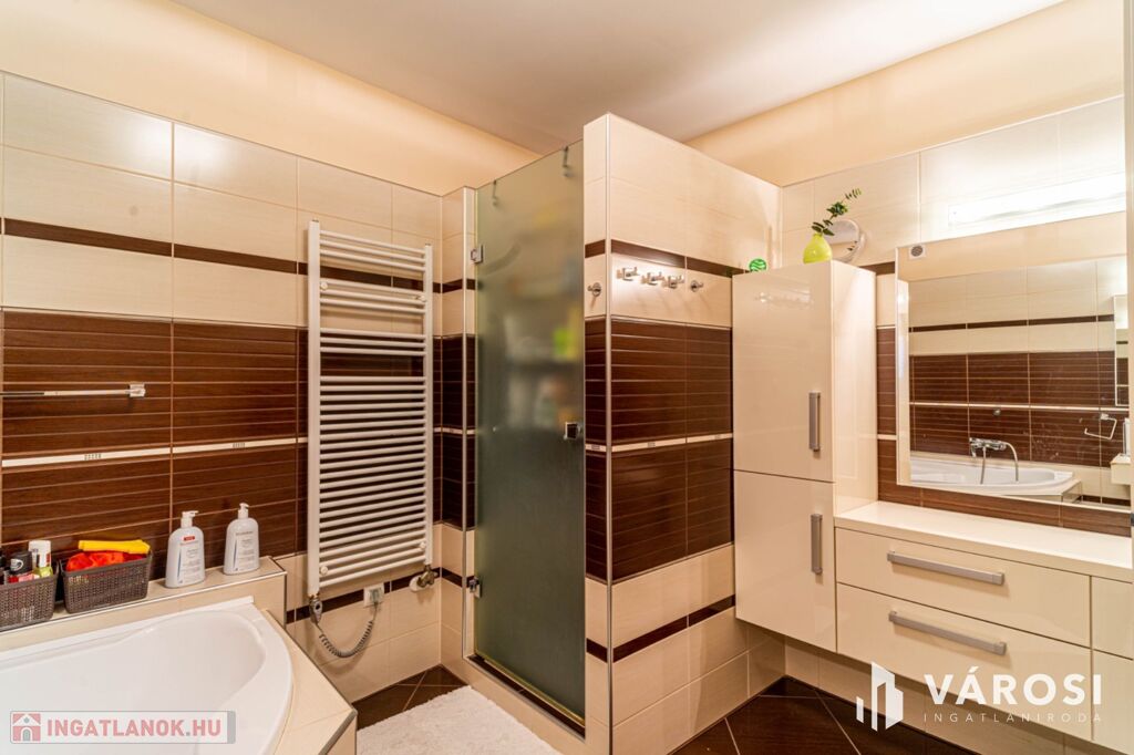A lakás kifogástalan állapotú, jó átgondolt terekkel rendelkezik, és kapott még külön gardróbot, és háztartási helységet is, ezen felül fürdőben sarokkád és tusoló is található.