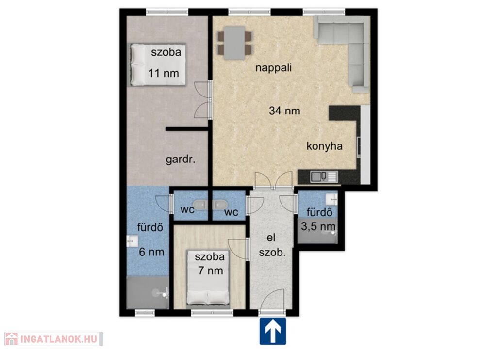 - Nappali,2. háló,2. fürdő, külön WC, gardrób.