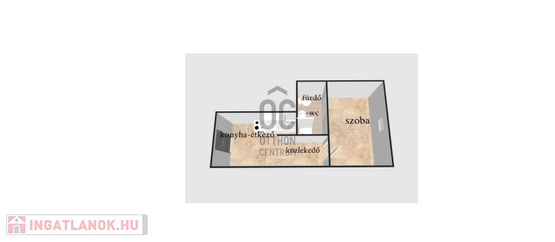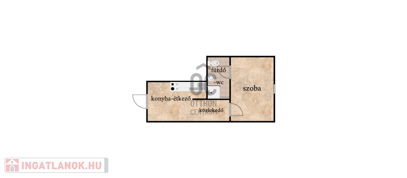 A lakás mérete 26,26 m2, elrendezése: konyha-étkező, közlekedő, fürdő mellékhelyiség és egy kellemes szoba.