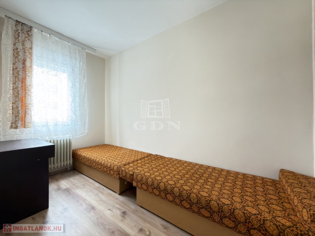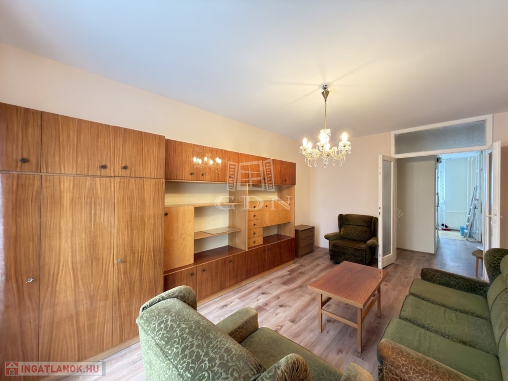 BL-004716. Szedreskerti lakónegyedben 1,5 szobás, 1. emeleti bútorozott, de gépesítés nélküli átlagos állapotú lakás kiadó. A lakás 44 nm-es, jó elosztású, ablakai zöldövezetre néznek. Minden helyiségben a falak festettek, laminált padló van a konyhában és vizes helyiségekben, és a szobákban. A kádas fürdő és a wc egy helységben található.