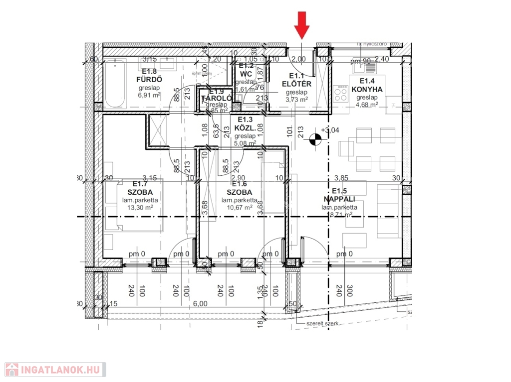Ez a modern lakás 2 hálószobával, tágas nappali-étkező-konyhával, valamint külön WC-vel és fürdőszobával (WC, kád és zuhanyzó) rendelkezik.