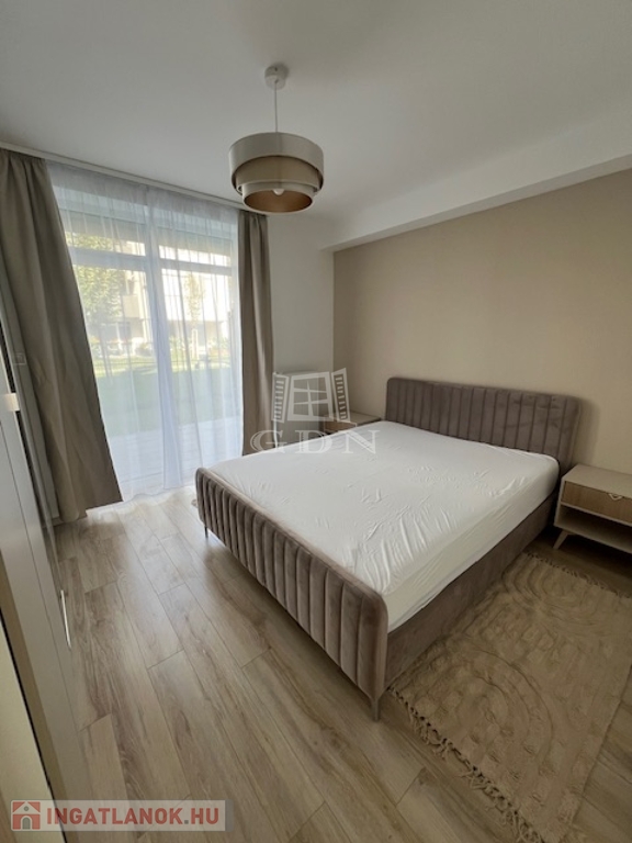 Szigetszentmiklóson, remek közlekedési lehetőségek mellett, az új Thököly utcai lakóparkban, modern, belső udvaros, a külvilágtól elektromos kapuval zárt társasházban, 63m2 lakóterületű, összkomfortos, egyedi méréssel rendelkező házközponti fűtéses, földszinti, lakberendező által berendezett lakás, 10m2 kertkapcsolatos terasszal kiadó.