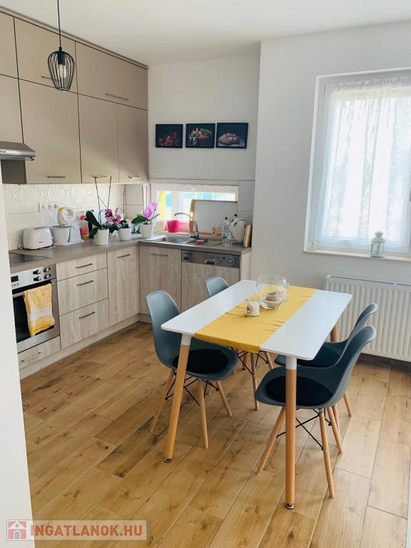 Elosztása: amerikai-konyhás nappali , kamra,két hálószoba, fürdő, wc, előtér, terasz. Az épületek kivitelezésénél magas minőségű alapanyagok kerültek beépítésre. Fűtése gáz házközponti, lakásonként egyedi mérőkkel,nagyon alacsony fenntartással.