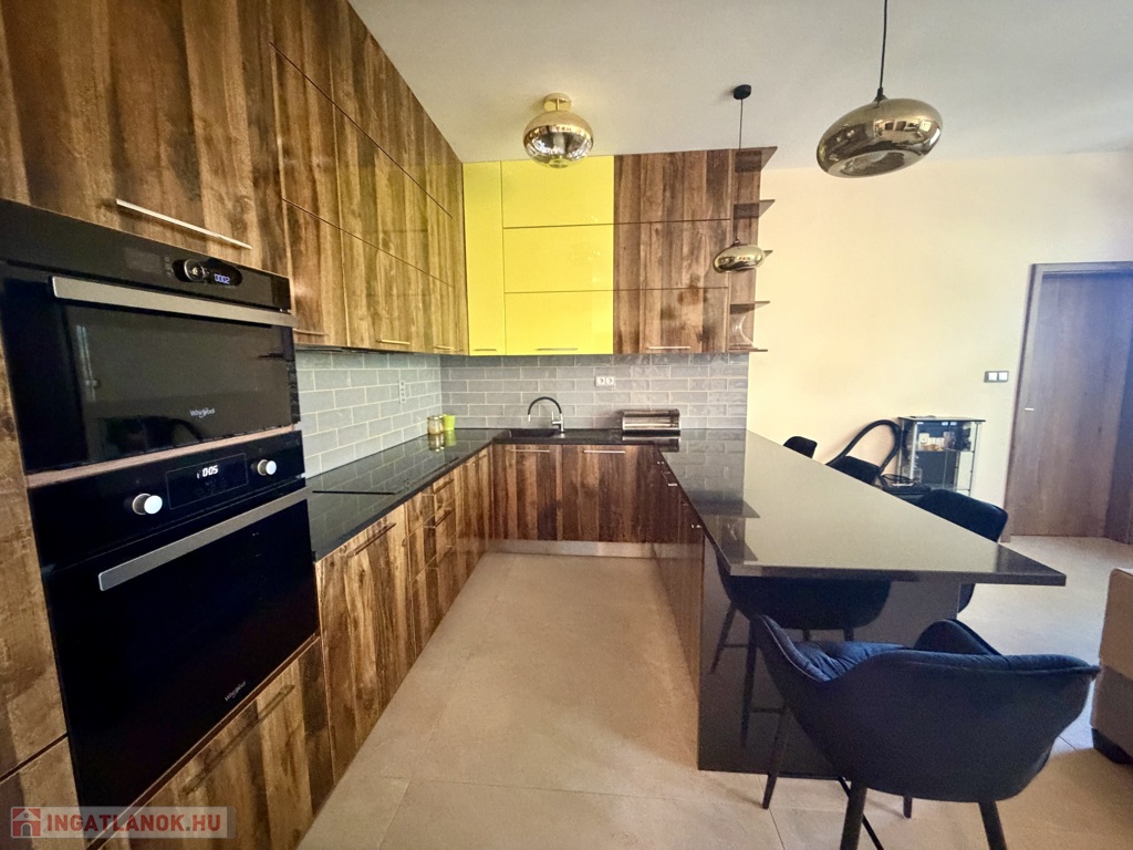 A prémium minőségű beépített konyha minden igényt kielégít – modern gépekkel, letisztult dizájnnal és minőségi anyagokkal. A lakás akár teljes bútorzattal is bérelhető, ízléses, harmonikus berendezéssel.