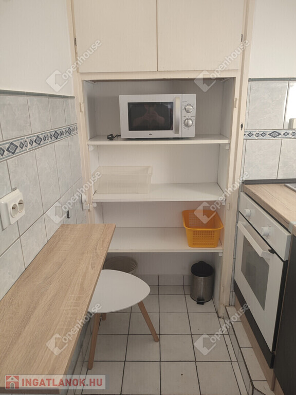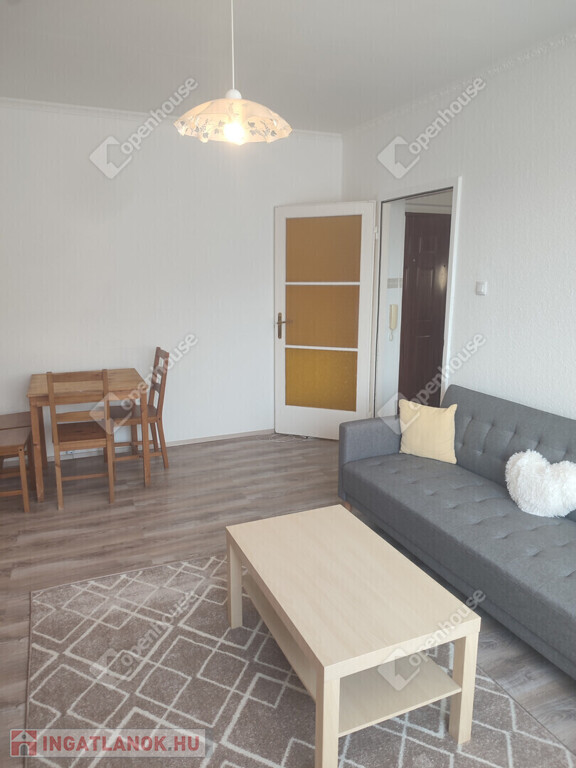 Az ingatlan részben bútorozva kerül kiadásra. A nappaliban egy szekrénysor, és egy nagy méretű kanapé, és egy étkezőasztal szélekkel biztosítja a kényelmet. A fél szoba, akár hálóként is funkcionálhat, egy ruhás szekrény áll rendelkezésre. A konyhabútor tűzhellyel, és tároló felületekkel segíti lakóját. A nyílászárók korszerű műanyag szerkezetűek, a bejárat fém bizonsági ajtóval rendelkezik.