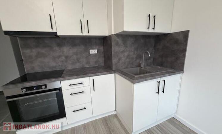 • 2 hálószoba+nappali új amerikai konyha beépített gépekkel, sütő főzőlap páraelszívó, hűtő fagyasztó